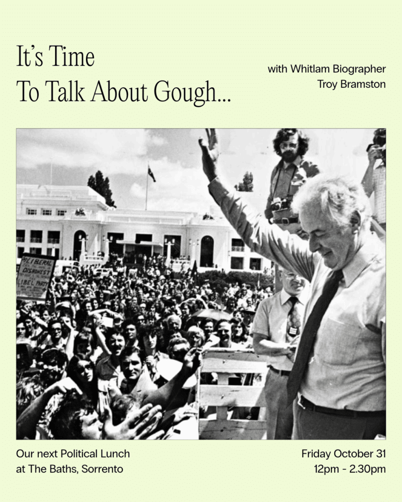Gough Whitlam: The Vista of the New arrives in bookstores on October 28. We are delighted that three days later, Troy will be joining us in Sorrento to discuss his new book with Sorrento Writers Festival Director Corrie Perkin.